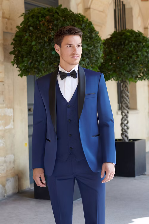 Le smoking Fosio est composé d’une veste, d’un gilet, d’un pantalon.